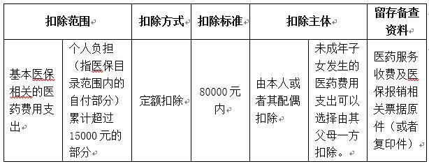 纳税人发生的医药费用支出可以选择由本人或其配偶一方扣除;未成年子女发生的医药费用支出可以选择由其父母一方扣除。纳税人及其配偶、未成年子女发生的医药费用支出,按规定分别计算扣除额。